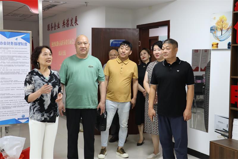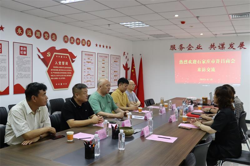 6月21日上午石家莊市許昌商會(huì)會(huì)長朱登山、 執(zhí)行會(huì)長孫會(huì)營、賈克輝、秘書長焦平、副秘書長王建民一行5人蒞臨我會(huì)參觀交流。市工商聯(lián)副主席曲釗霞對到訪的兄弟商會(huì)表示熱烈歡迎,我會(huì)秘書長黃玉霞、執(zhí)行會(huì)長張建濤、副秘書長范文彥熱情接待并進(jìn)行座談交流。 通過參觀文化墻、觀看宣傳片向來賓展示了協(xié)會(huì)歷程和發(fā)展情況。
