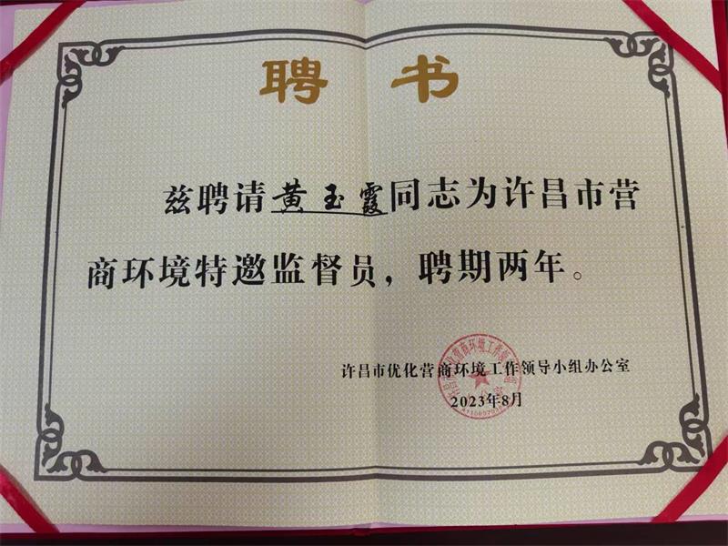 會上,市發(fā)改委黨組成員、副主任王兵介紹了會議的有關(guān)情況,并對許昌市企業(yè)家協(xié)會秘書長黃玉霞頒發(fā)許昌市營商環(huán)境特邀監(jiān)督員聘書,秘書長黃玉霞表示:感謝組織信任,特邀監(jiān)督員既光榮責(zé)任又重大,在市營商環(huán)境辦的正確領(lǐng)導(dǎo)下,積極履行監(jiān)督職責(zé),不辜負(fù)黨和政府的信任,不辜負(fù)群眾的期待,切實關(guān)注群眾“痛點”、聚焦企業(yè)“難點”,當(dāng)好企業(yè)問題的“調(diào)研員”、訴求反饋的“聯(lián)絡(luò)員”,切實做到“幫”到點子上、“助”到關(guān)鍵處,為我市營商環(huán)境高質(zhì)量發(fā)展貢獻(xiàn)綿薄之力。