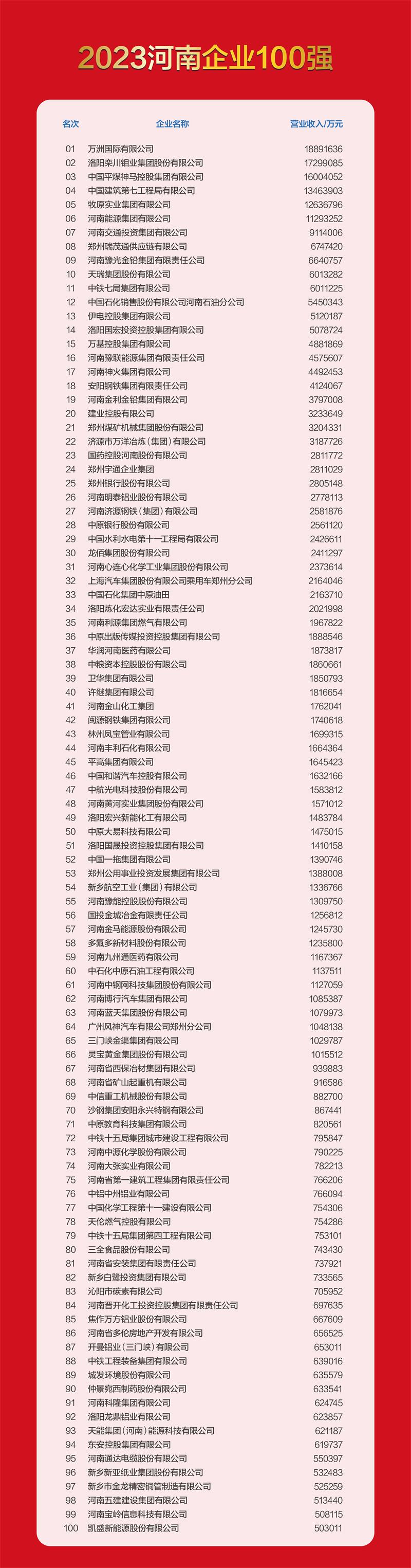 據悉,許昌市榮獲“2023河南企業(yè)100強”的企業(yè)有