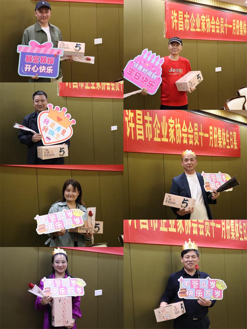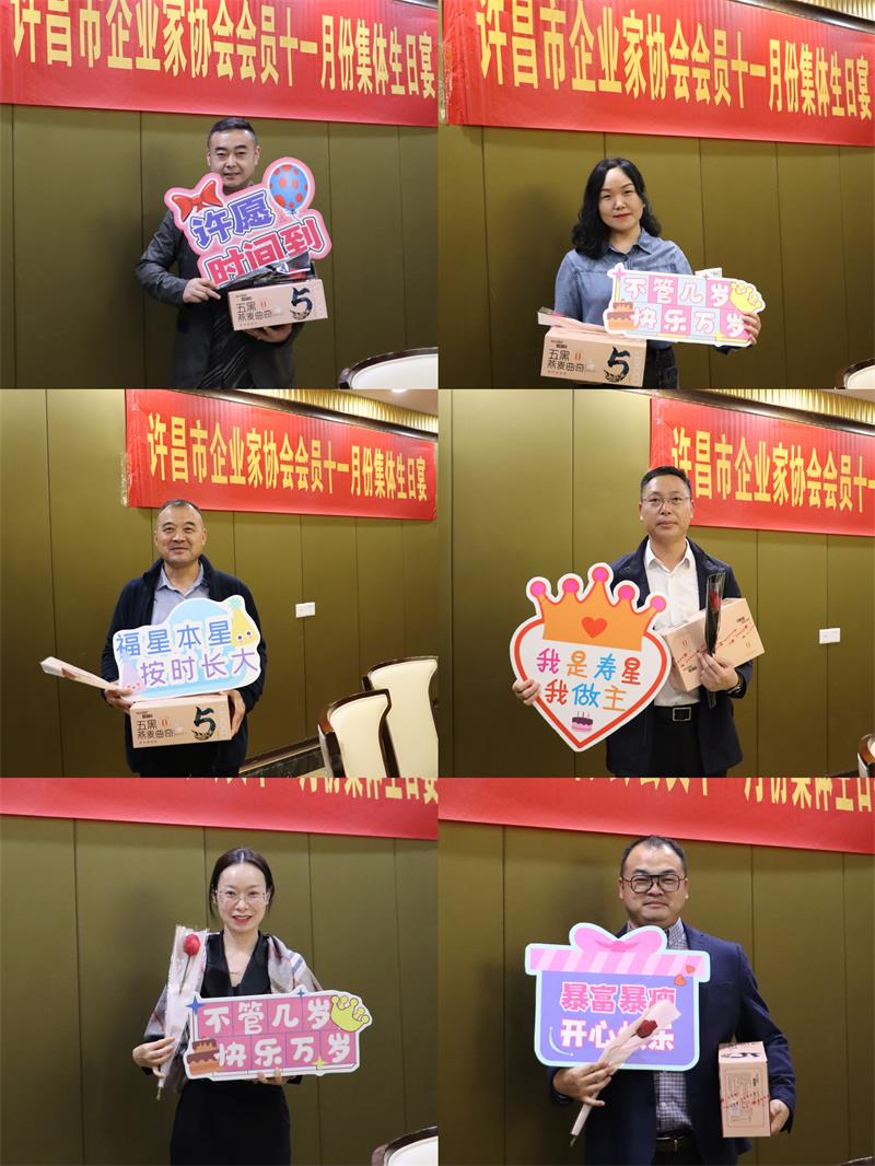 11月3日晚上,許昌市企業(yè)家協(xié)會11月份集體生日宴,在世春閣酒店溫情舉辦。秘書長黃玉霞、婦聯(lián)主席曲釗霞、副秘書長范文彥、值班會長汪建成等共20位協(xié)會會員相聚共度生日宴。