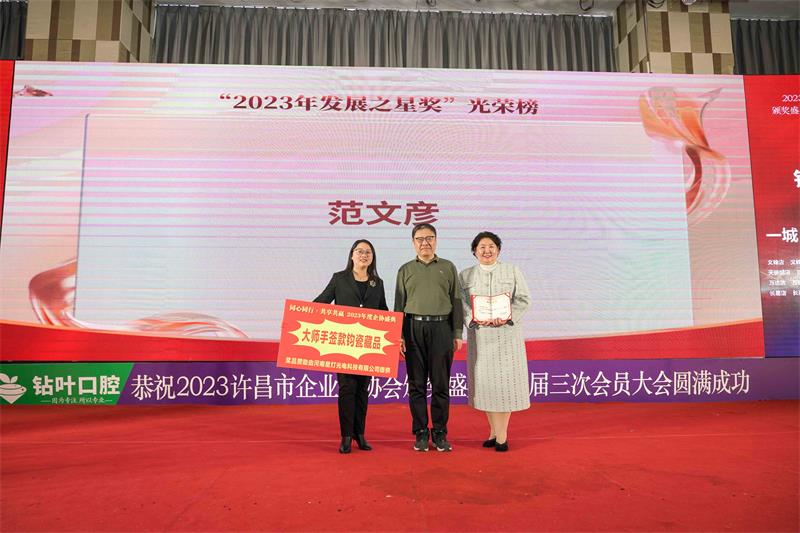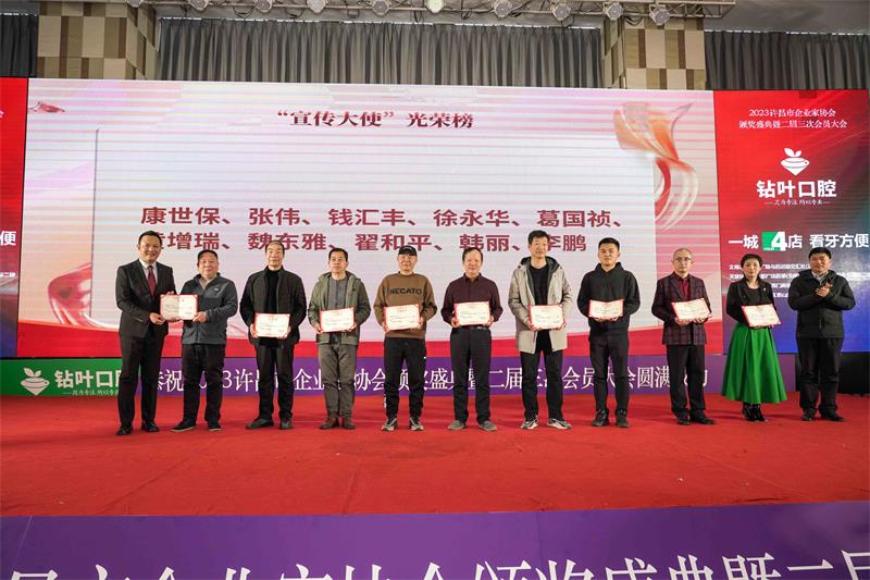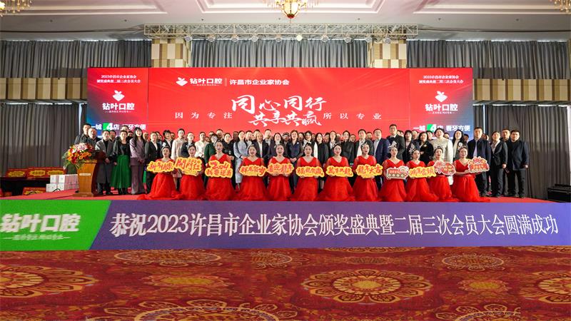 辭舊迎新,歲回律轉(zhuǎn)。揮手告別難忘的2023,昂首跨入充滿希望的2024。1月13日下午,由許昌市鉆葉口腔連鎖總冠名的“同心同行?共享共贏”許昌市企業(yè)家協(xié)會2023年度頒獎盛典暨二屆三次會員大會在中原大酒店百合廳成功召開。協(xié)會邀請了中共魏都區(qū)委、市工商聯(lián)、市發(fā)改委、市黨史和地方志研究室、市民政局、市婦聯(lián)、許昌人才集團(tuán)、市廣播電視臺、河南映象網(wǎng)、許昌日報(bào)社、許昌市商丘商會等相關(guān)部門領(lǐng)導(dǎo)及協(xié)會會員200多人參加了本次年會。