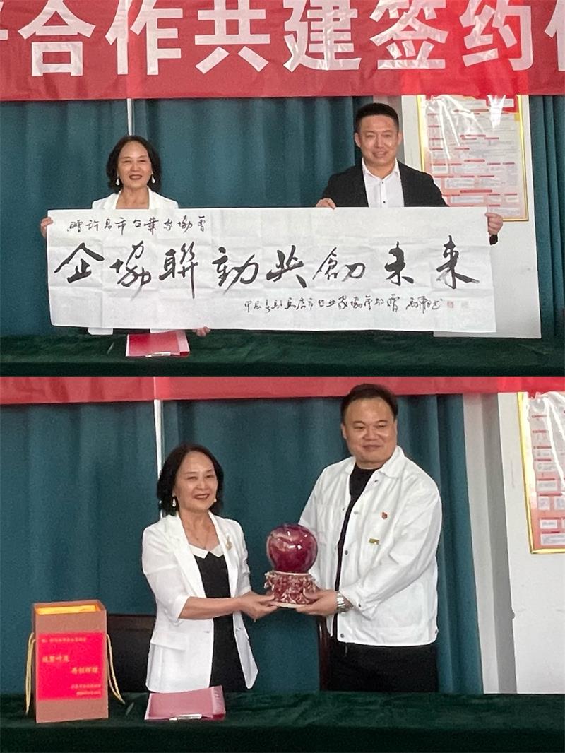 會(huì)上,駐馬店市工商聯(lián)副主席、市企業(yè)家協(xié)會(huì)黨委書記黨進(jìn)代表駐馬店市企協(xié)向許昌市企協(xié)贈(zèng)送名家書法作品《企協(xié)聯(lián)動(dòng) 共創(chuàng)未來(lái)》;黃玉霞秘書長(zhǎng)代表許昌市企協(xié)向駐馬店市企協(xié)回贈(zèng)由河南省工藝美術(shù)大師鈞瓷《財(cái)源滾滾》。一卷墨寶、一件珍品,藝術(shù)與古典交相輝映,傾注了兩地協(xié)會(huì)的溫暖情誼,同時(shí)也傳遞了雙方的美好祝福。