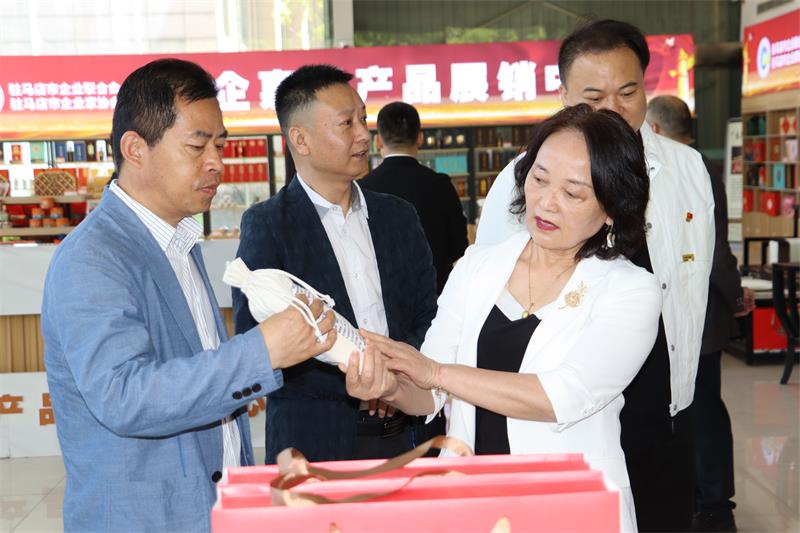 隨后,許昌市企業(yè)家協(xié)會(huì)一行來(lái)到位于金雀工業(yè)園的駐馬店市企業(yè)家協(xié)會(huì)產(chǎn)品展銷中心,聽取產(chǎn)品展銷中心主任李峰關(guān)于展館運(yùn)營(yíng)管理機(jī)制、企業(yè)產(chǎn)品展示、資源對(duì)接、助企惠農(nóng)情況介紹??疾靾F(tuán)一行對(duì)展銷中心品類多、品質(zhì)優(yōu),“萬(wàn)企興萬(wàn)村”助力鄉(xiāng)村振興和“打造永不落幕的農(nóng)洽會(huì)”的模式紛紛點(diǎn)贊,并給予高度評(píng)價(jià)。
