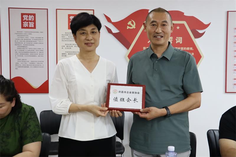 6月5日下午,許昌市企業(yè)家協(xié)會(huì)六月份輪值會(huì)長(zhǎng)工作交接會(huì)在許昌市企業(yè)家協(xié)會(huì)會(huì)議室召開,會(huì)議由六月份值班會(huì)長(zhǎng)、許昌康潔洗滌有限公司總經(jīng)理薛世興主持。