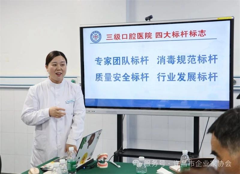會議特別邀請許昌皓博口腔醫(yī)院醫(yī)務科科長王川為與會企業(yè)家?guī)?口腔保健知識"專題分享。王川從專業(yè)角度深入淺出地講解了口腔健康的重要性、口腔與全身健康的關聯、日常口腔護理要點以及醫(yī)療無菌操作規(guī)范等內容,為企業(yè)家們上了一堂生動的健康管理課。