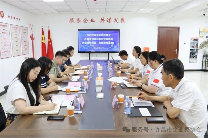 2025年6月24日上午,貴陽市人民政府駐武漢辦事處副主任姚固濤一行5人到訪我會進行工作交流。協(xié)會秘書長黃玉霞、常務副秘書長范文彥、本月份值班會長李偉平、四月份值班會長韋永才、七月份值班會長張?zhí)┟窆餐哟⑴e行座談。