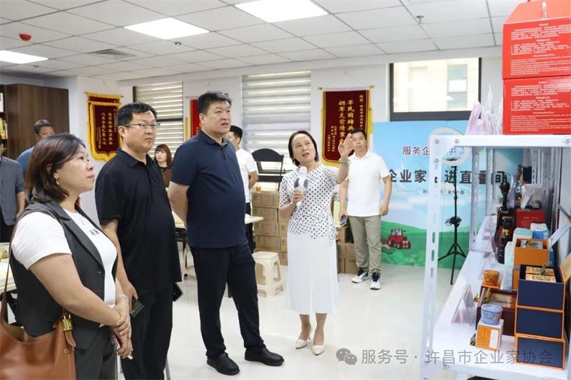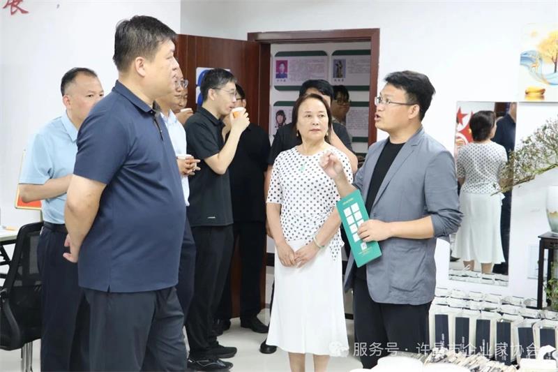 在黃玉霞的陪同下,考察團(tuán)首先參觀了協(xié)會黨建文化陣地,詳細(xì)了解協(xié)會"黨建促會建"的特色工作模式。隨后,考察團(tuán)重點參觀了會員企業(yè)產(chǎn)品展示區(qū),黃玉霞就會員企業(yè)產(chǎn)品種類、綠色健康及市場銷售等方面作了詳細(xì)介紹。