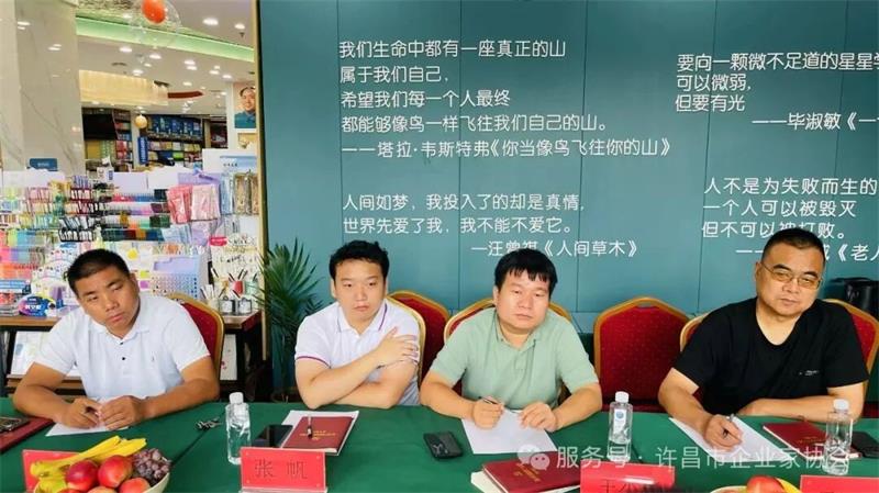主持會議的七月份值班會長、宣和鈞釉無機涂料許昌總經銷的張?zhí)┟?,他還分別介紹了七組其他成員,如許之洲機電公司公司、鄢陵河崗留守兒童學校、河南柏毅醫(yī)療、哈頓星球田園營地等企業(yè)及產品情況。