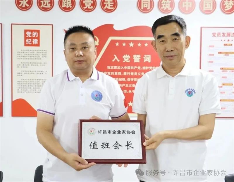 2025年8月5日,許昌市企業(yè)家協(xié)會在協(xié)會會議室召開七月份與八月份輪值會長交接會議,會議伊始,七月份值班會長與八月份值班會長進行了莊嚴的值班交接儀式,標志著協(xié)會工作進入新階段。